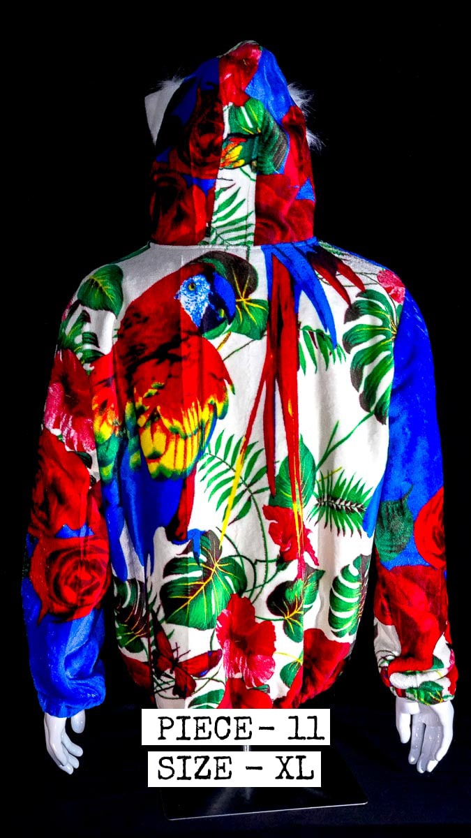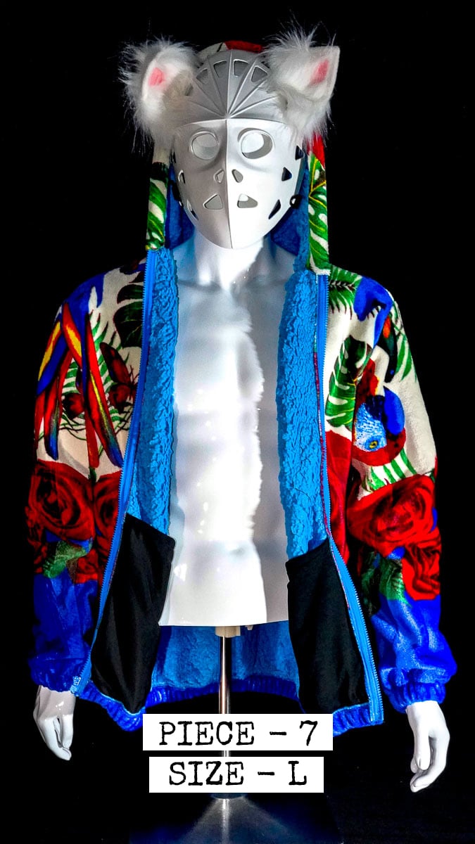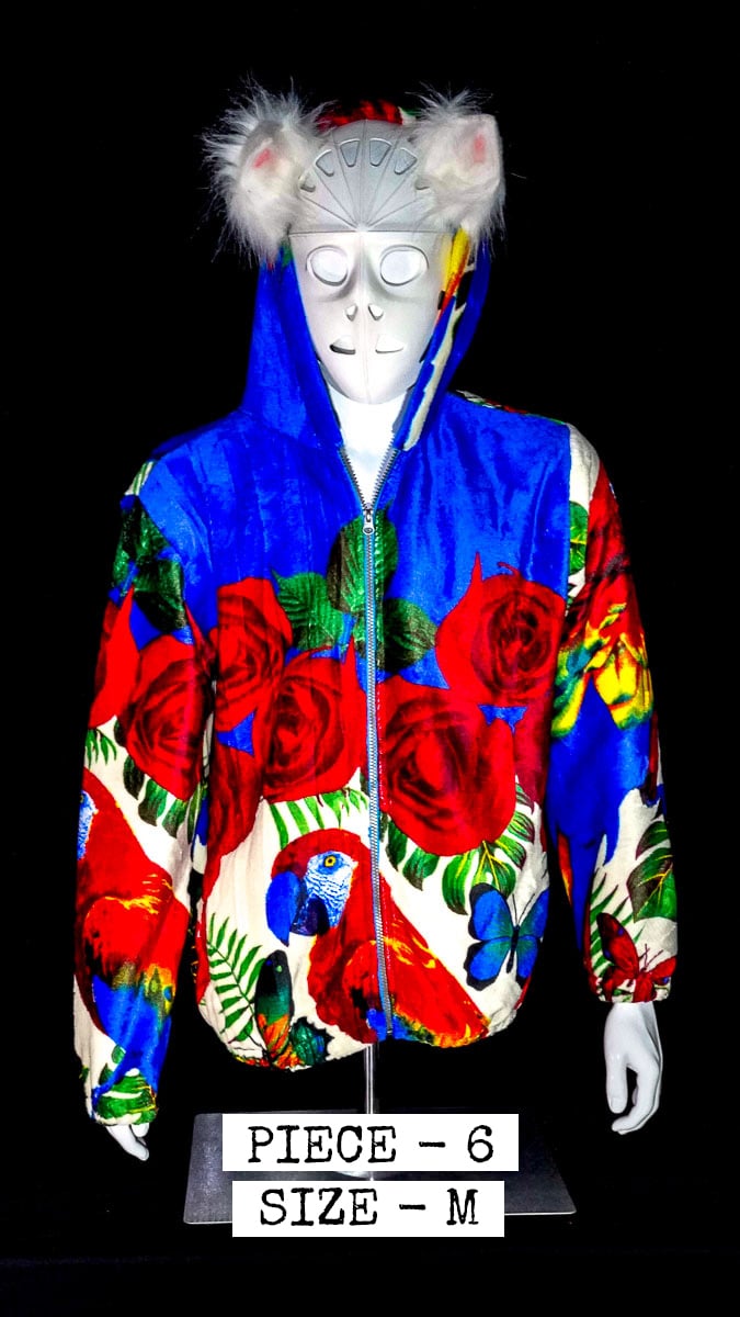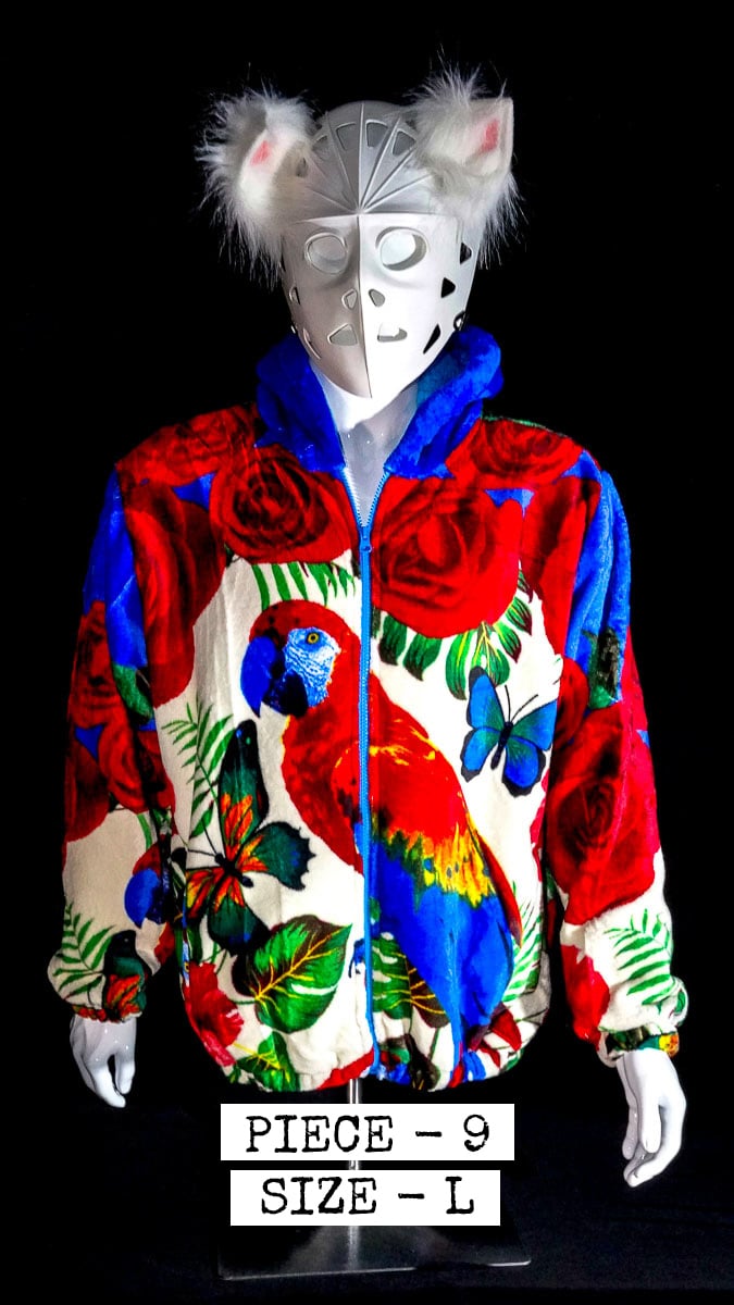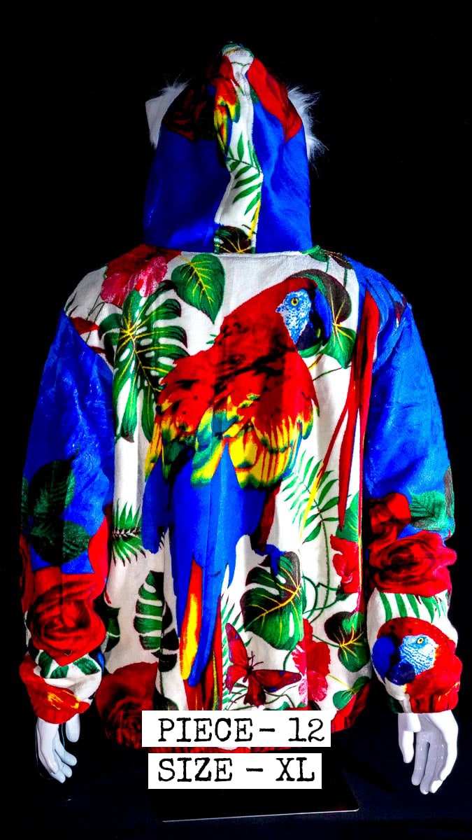 The Scarlet Aviary is a Primal-class, fully lined statement jacket built for presence. Ultra-soft, heavy in hand, and unapologetically loud, it features oversized tropical artwork, a relaxed unisex fit, and hidden utility throughout.