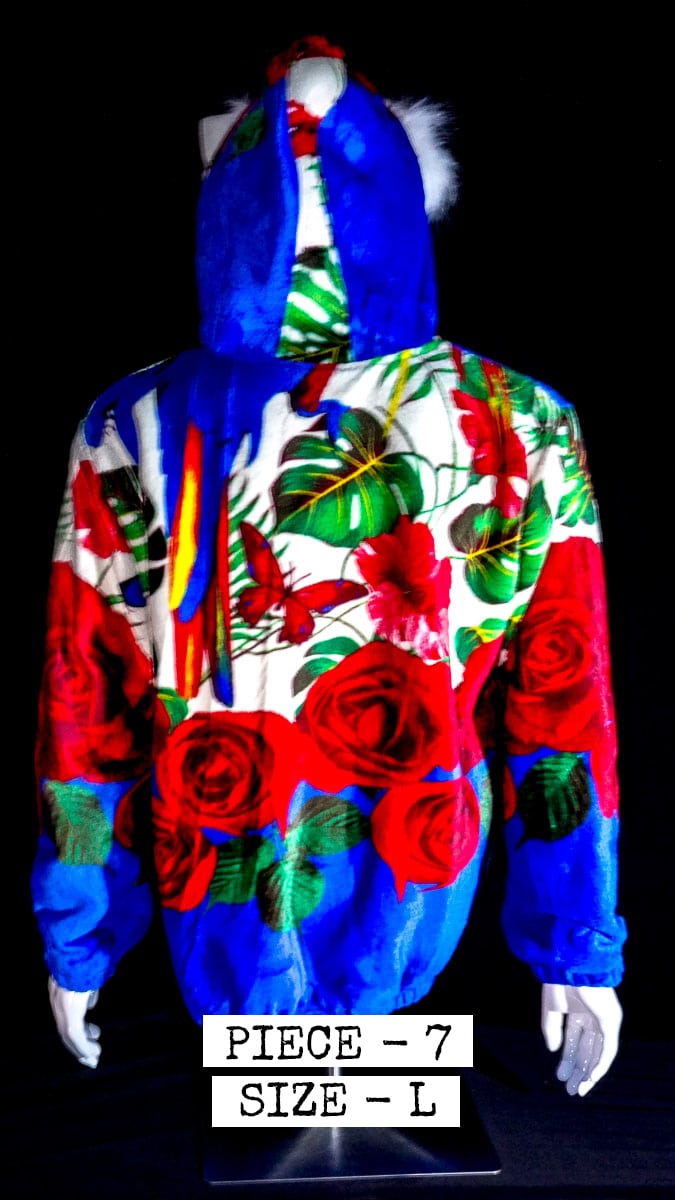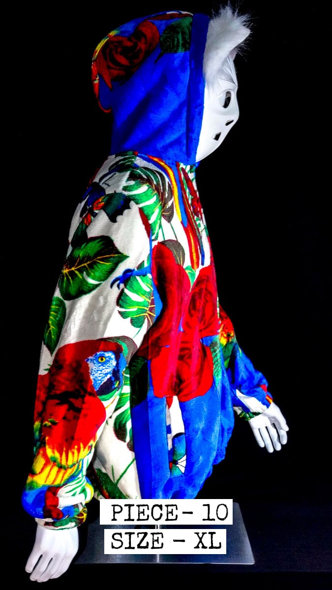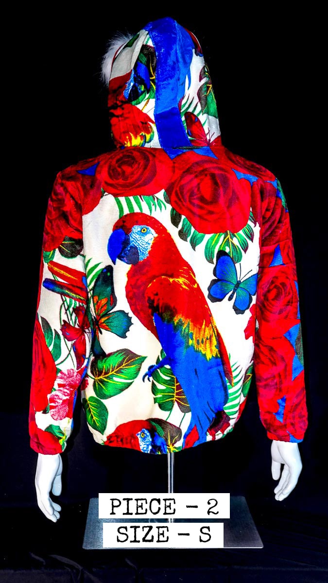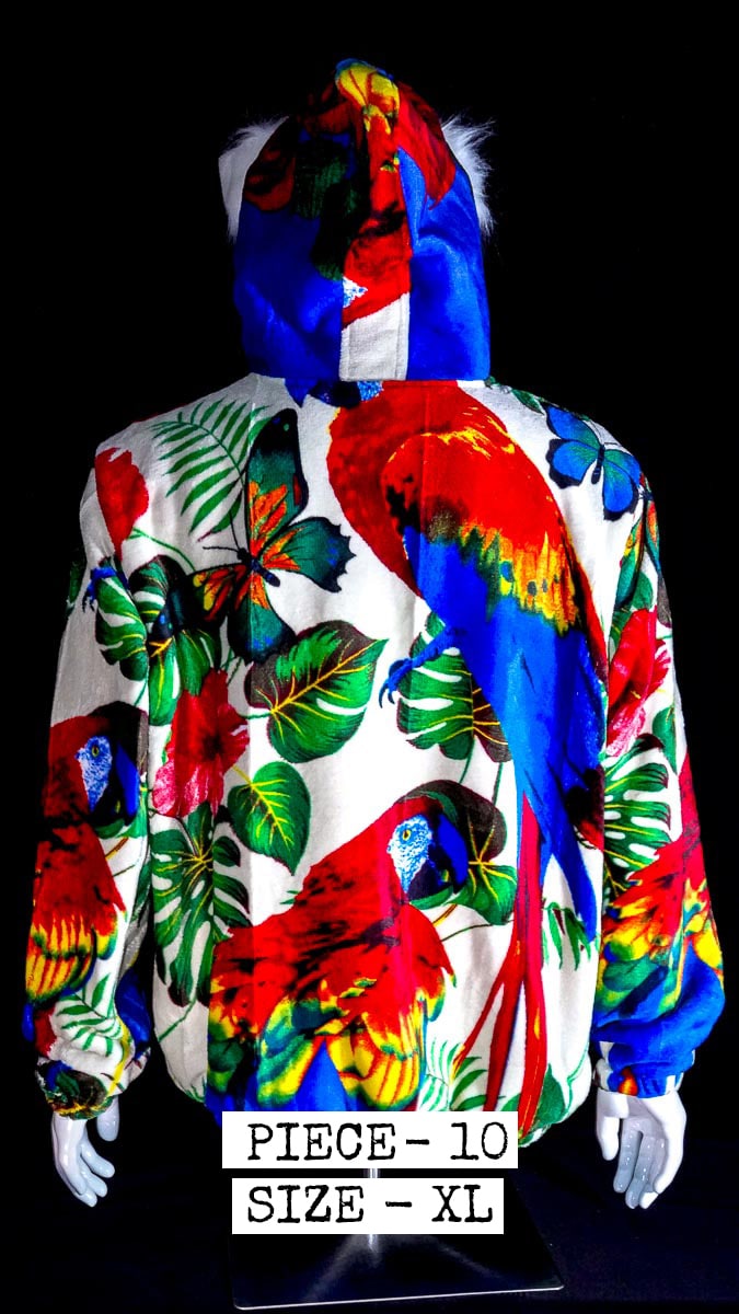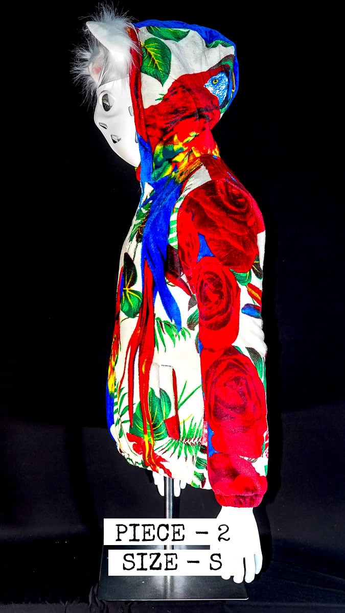 The Scarlet Aviary is a Primal-class, fully lined statement jacket built for presence. Ultra-soft, heavy in hand, and unapologetically loud, it features oversized tropical artwork, a relaxed unisex fit, and hidden utility throughout.